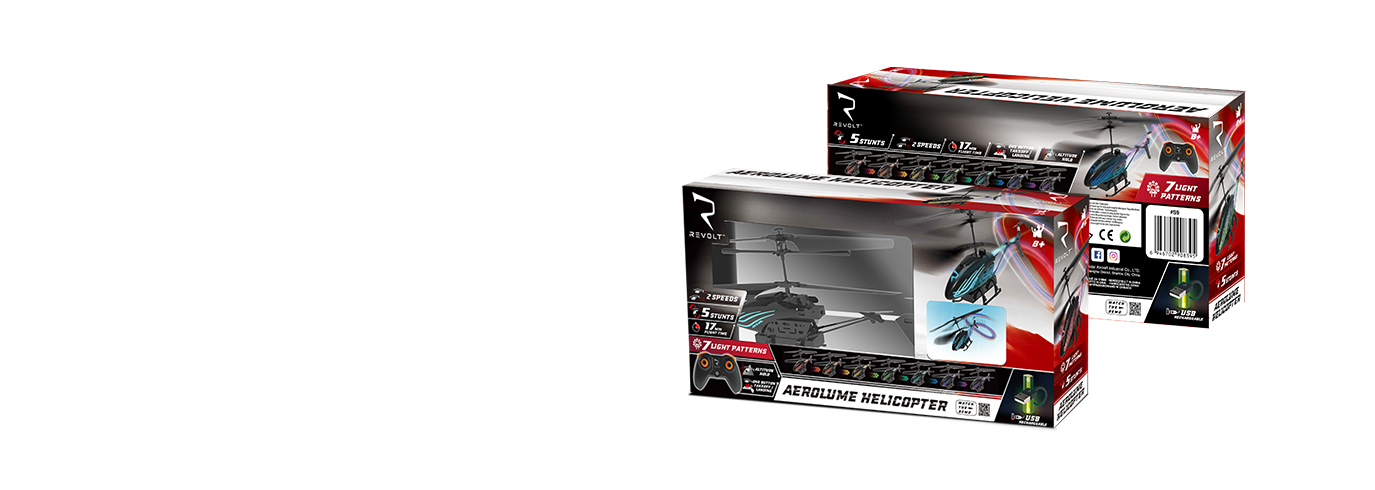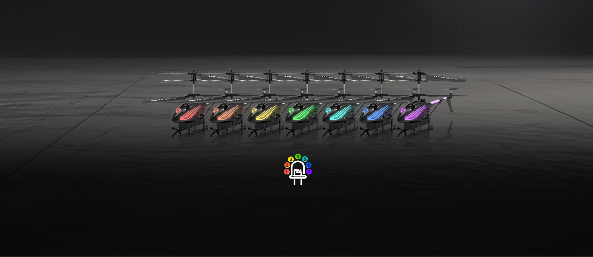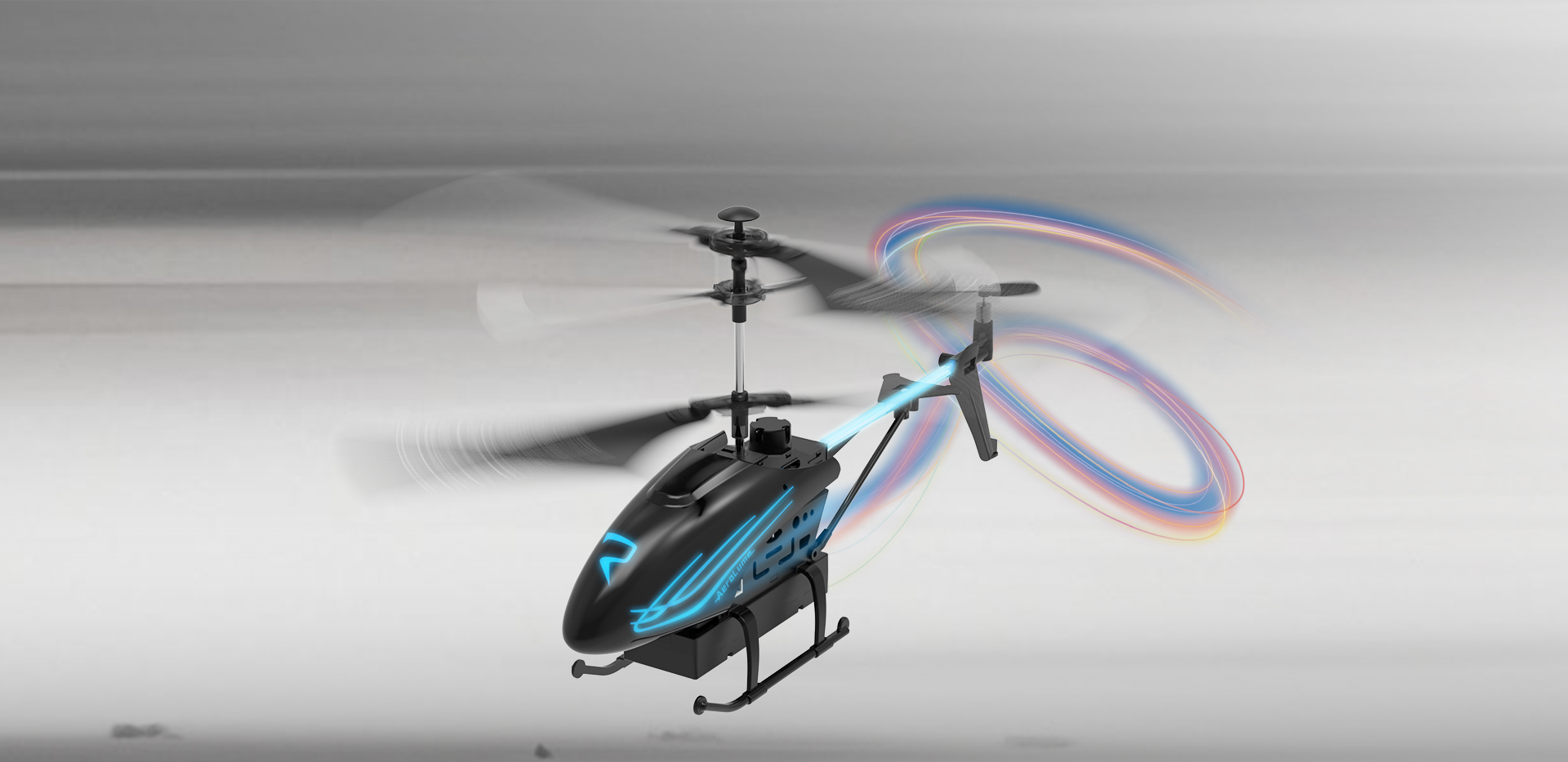 After code matching, the helicopter can be taken off / landed gradually by pressing only one button on the remote control.