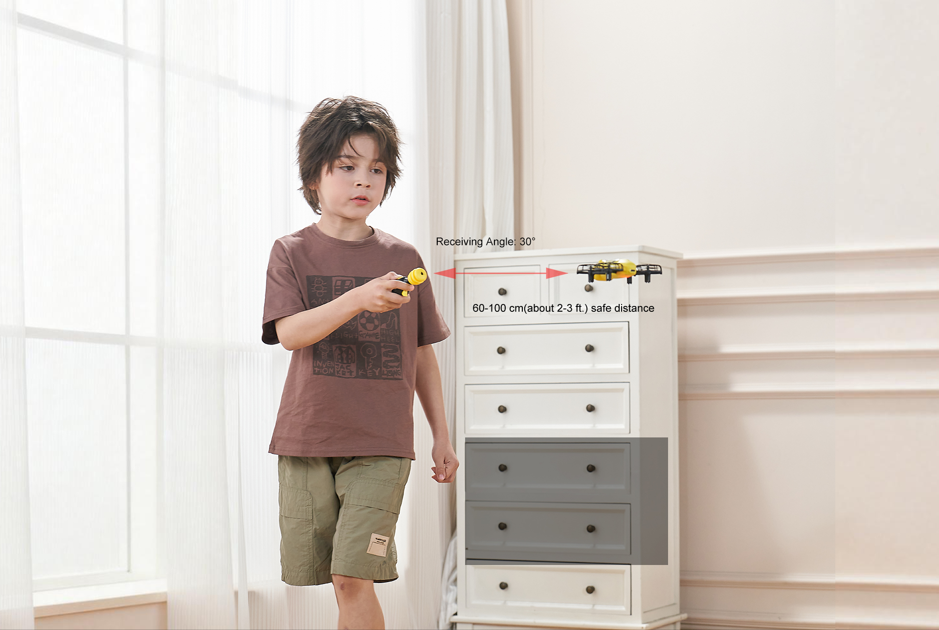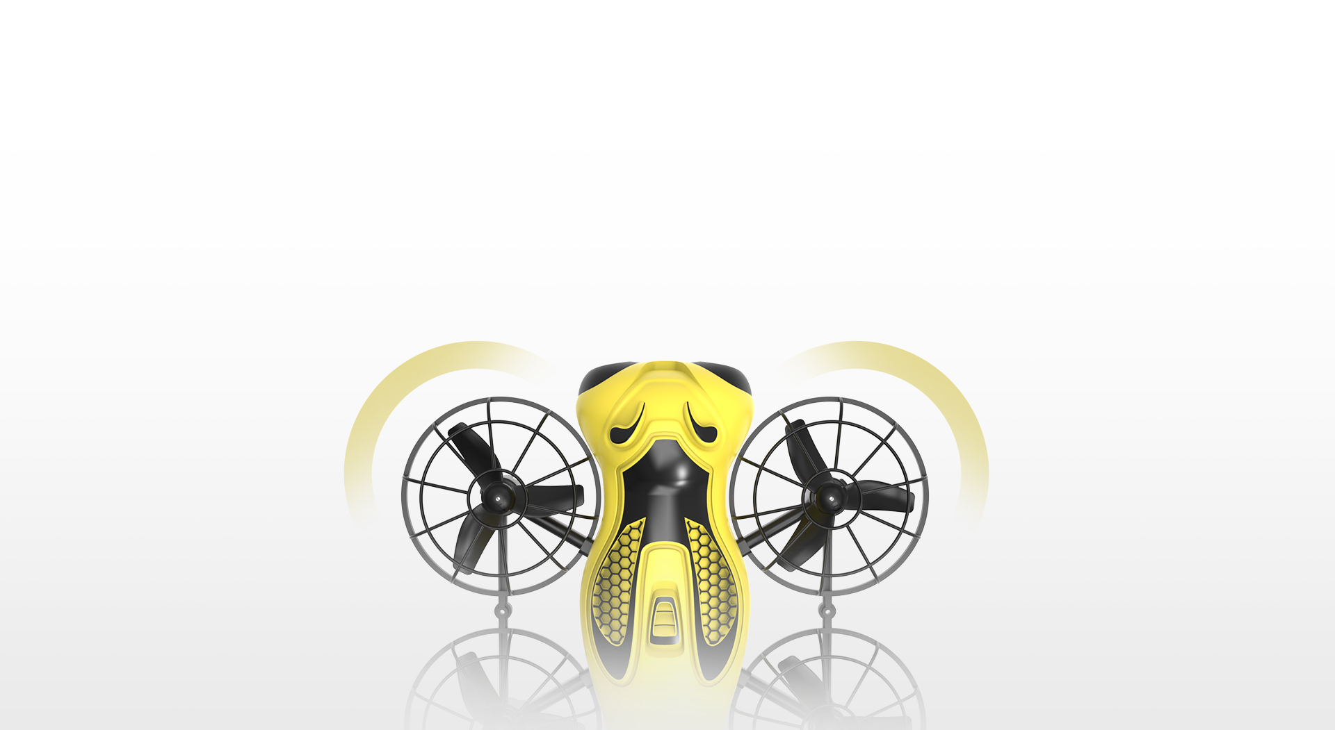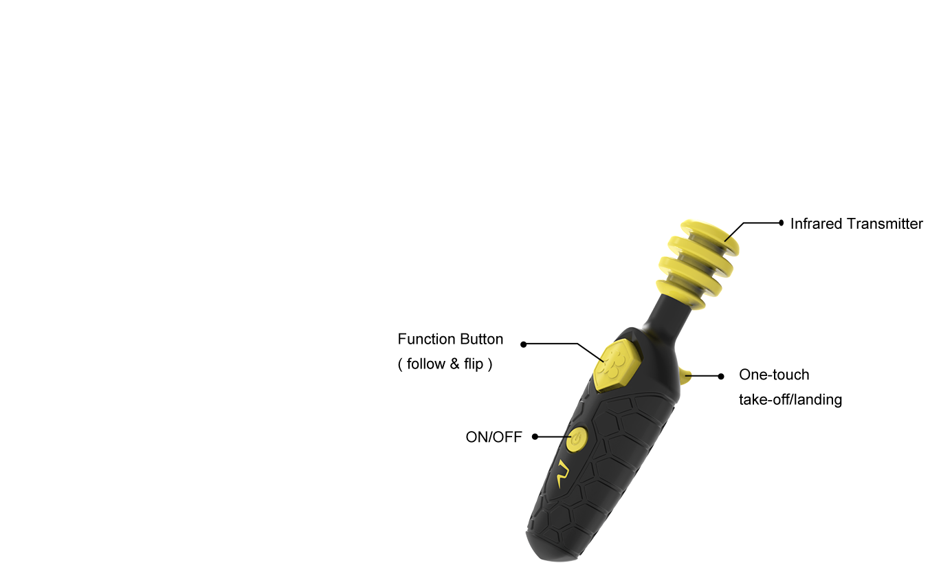 Once the BEE is in flight, point the remote control towards the BEE and press and hold the function button on the top of the remote control to make the BEE follow. Release the button to stop following.